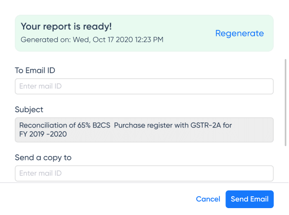 Draft custom emails, even in bulk to vendors apprising them of missing or incorrect invoices and claim 100% ITC.