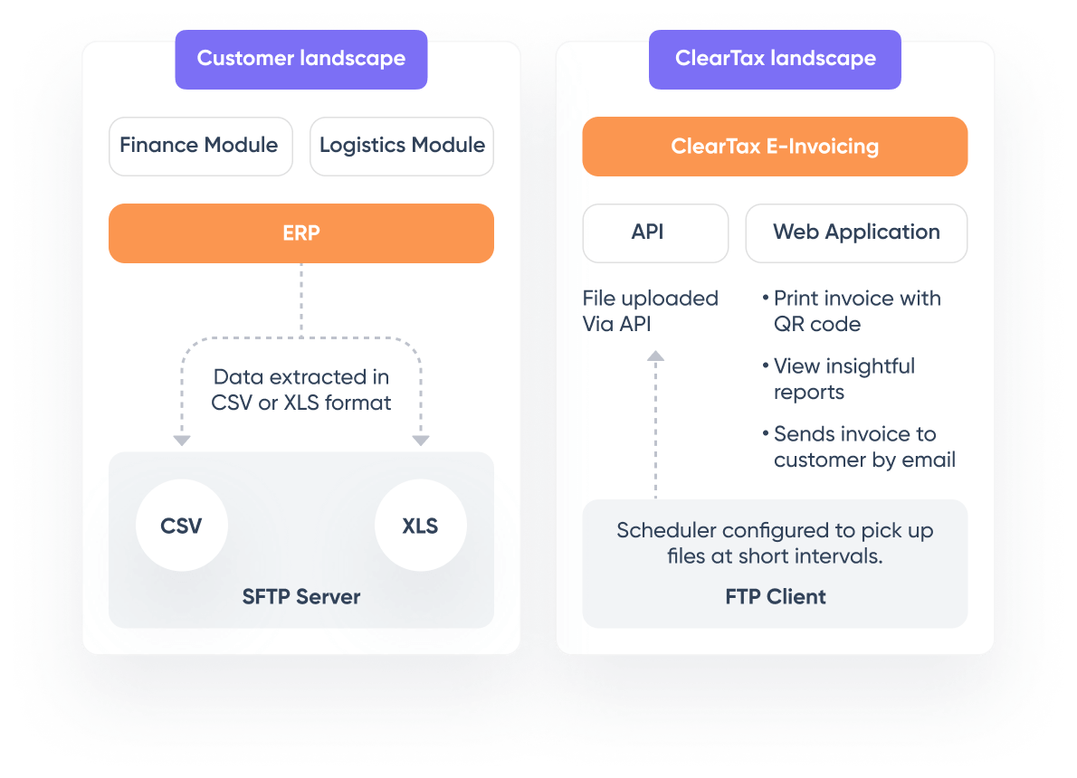 ClearTax easily integrates with every ERP irrespective of whether it is big or small. ClearTax has completed over 500 integrations with large businesses for GST, e-invoicing and e-waybills. ClearTax capability spans SAP S4 HANA/ECC, Oracle Netsuite, MS Navision/Dynamic, Tally and other ERPs.