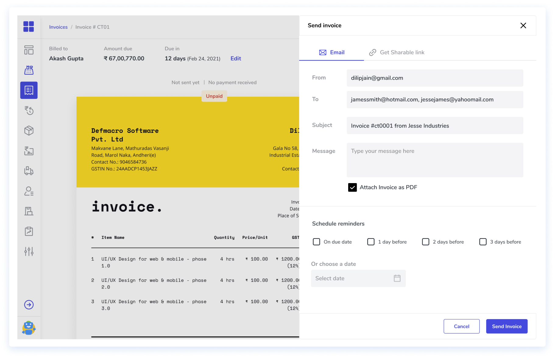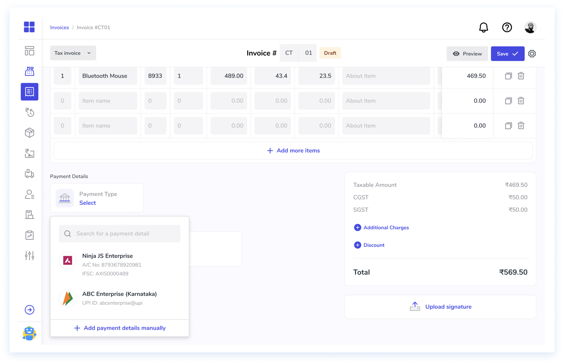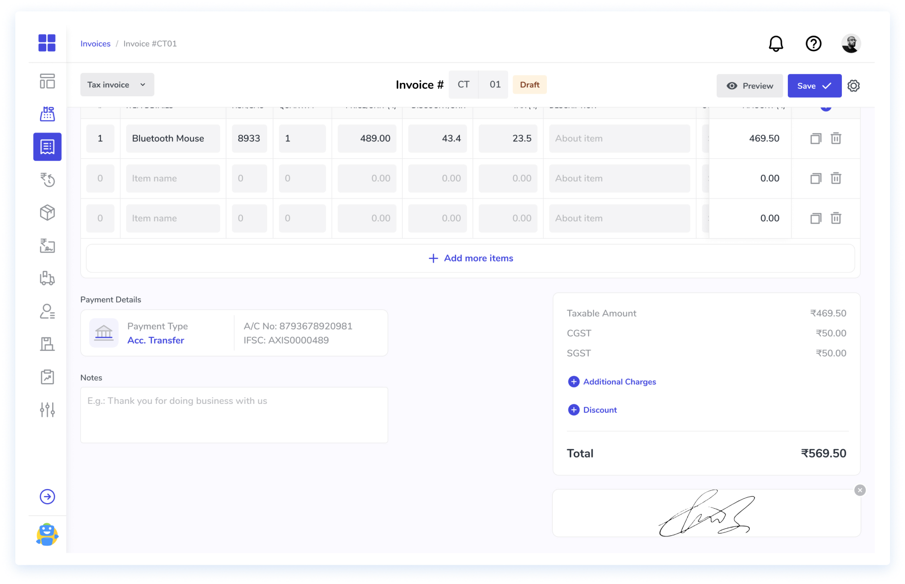 Get your invoices, e-Invoices, delivery challans, estimates, bills of supply and many more in one place. Track everything from a single dashboard.