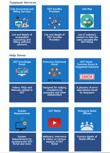 The help tab on the GST portal homepage contains many how-to guides, system requirements for various GST filings, user manuals, videos and FAQs and a link redirecting users to the grievance redressal portal. Further, a list of errors with resolutions are available.