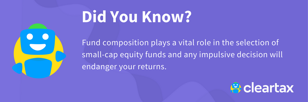 Small-cap stocks give individual investors an edge over institutional investors. This is because institutional investors prefer to purchases large-cap stocks due to its stability, while investors hoping for aggressive returns will invest in these funds. Further, fund composition plays a vital role, and an impulsive decision will endanger your investment.