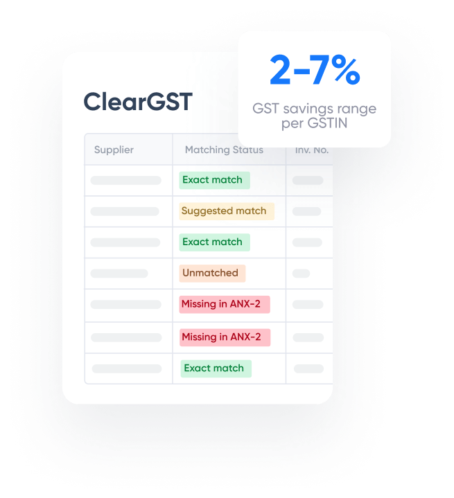 Our AI powered reconciliation engine and effective reports empower tax experts to deliver hard savings for their clients. With our platform, a ₹25Cr business can save about ₹5L and 2 days per GSTIN, every month.